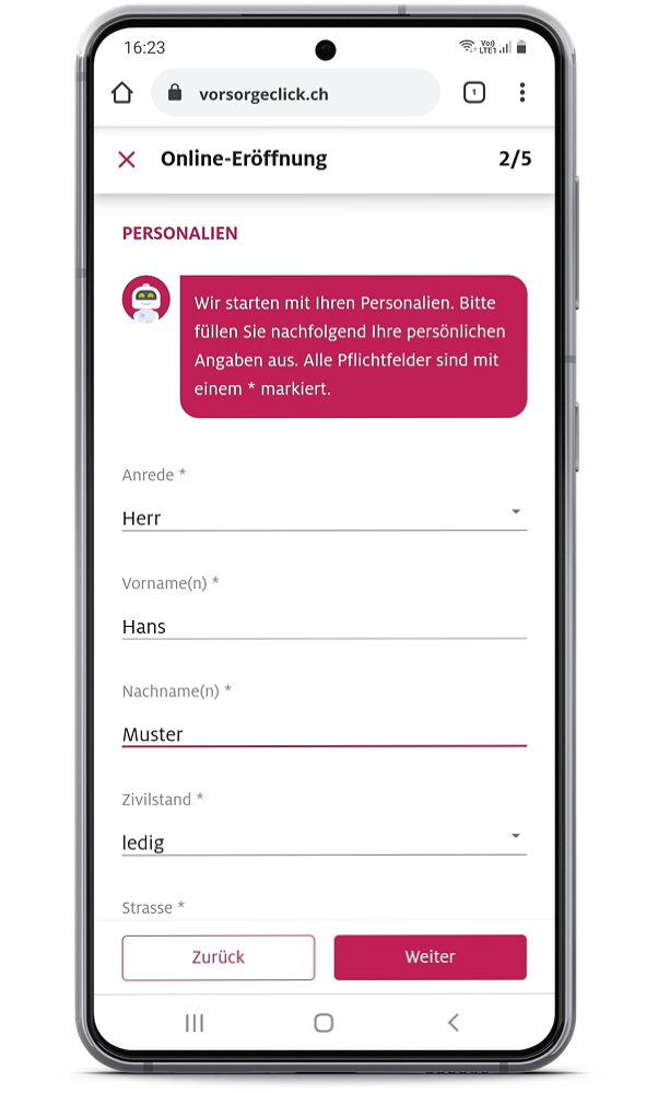 Nachdem Sie sich für Ihre Vorsorgelösung entschieden haben, können Sie diese konfigurieren. Anhand der Faktoren